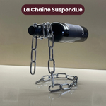 Inspirée du style industriel, cette chaîne métallique donne l’illusion d’un vin suspendu dans le vide. Un contraste fort entre la robustesse du métal et la légèreté visuelle de la mise en scène.